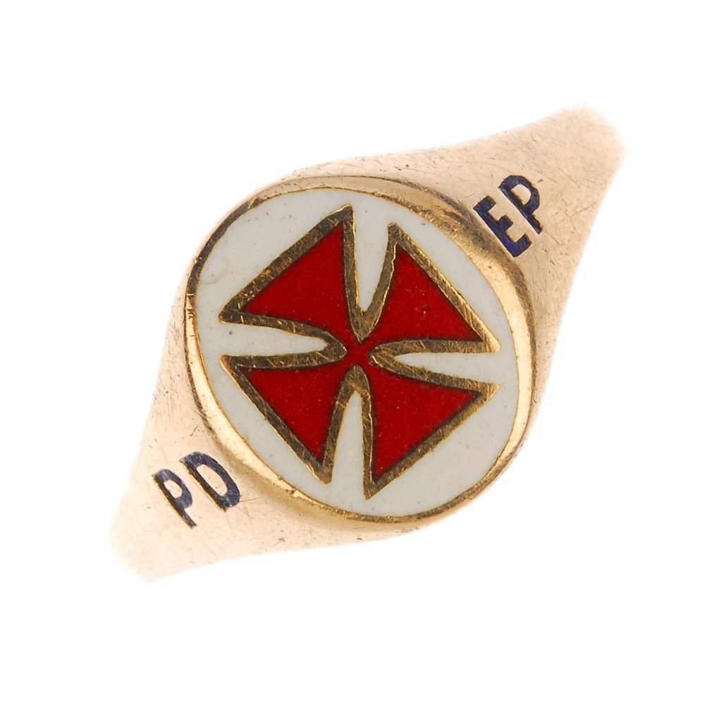 A 9ct gold enamel Masonic Templar ring.