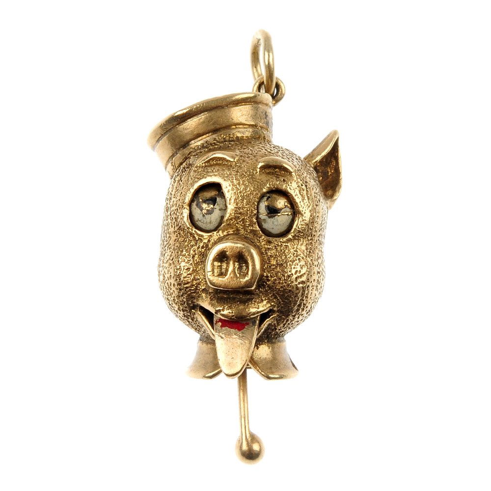 A 9ct gold enamel pig head charm.