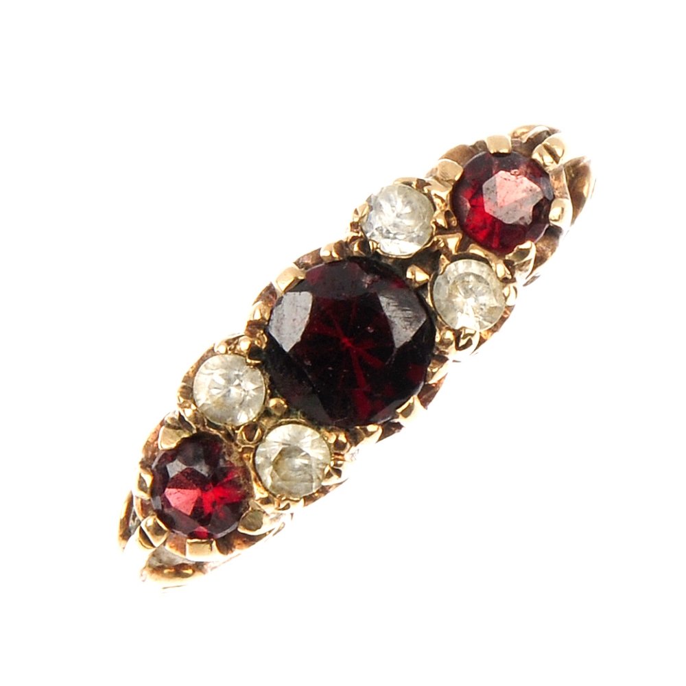 A 9ct gold garnet and paste ring.