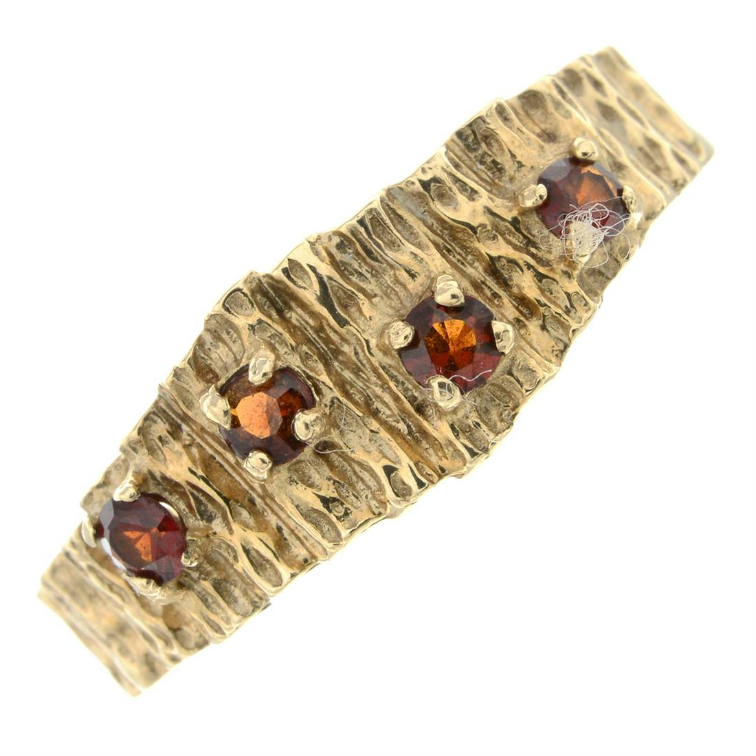 Sold9ct Gold five stone garnet ring together with a 9ct9ct Gold five stone garnet ring together with a 9ct gold ring (at fault)See Sold Price