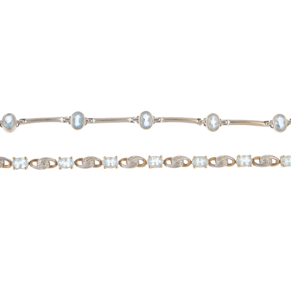 A 9ct gold gem-set bangle and two gem-set bracelets.