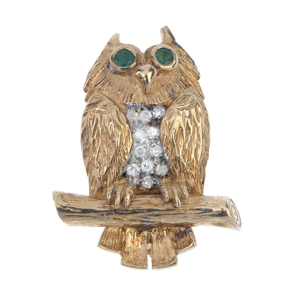 18K Yellow Gold Owl Brooch with 8.5 Carats Diamonds and Emerald EyesMynt Auctions4.4(826)$1003 days Left