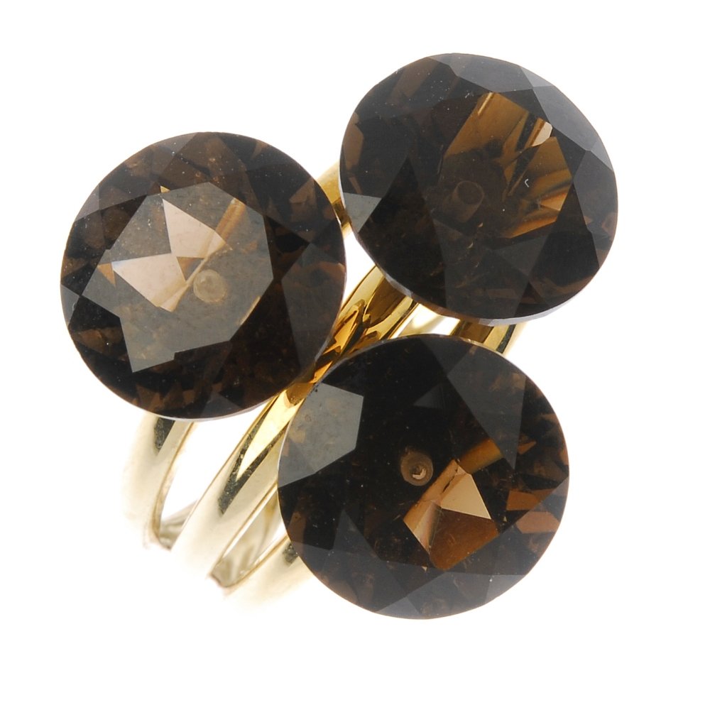 A 9ct gold gem-set dress ring. Comprising three