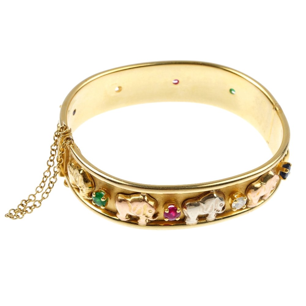 A 9ct gold gem-set hinged bangle.