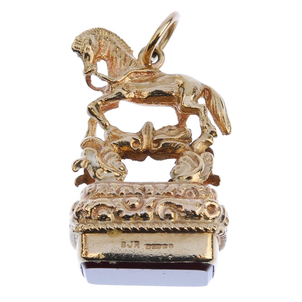 A 9ct gold hardstone fob.