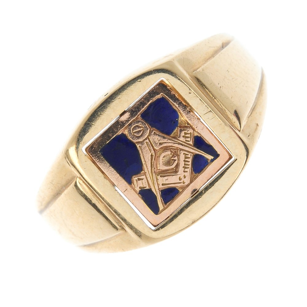 A 9ct gold Masonic swivel ring.