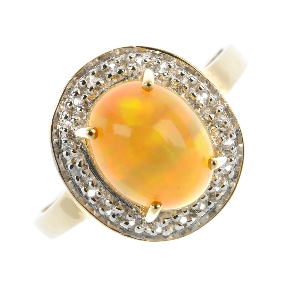 14k Yellow Gold 6.81ct Opal 2.75ct Diamond Ring