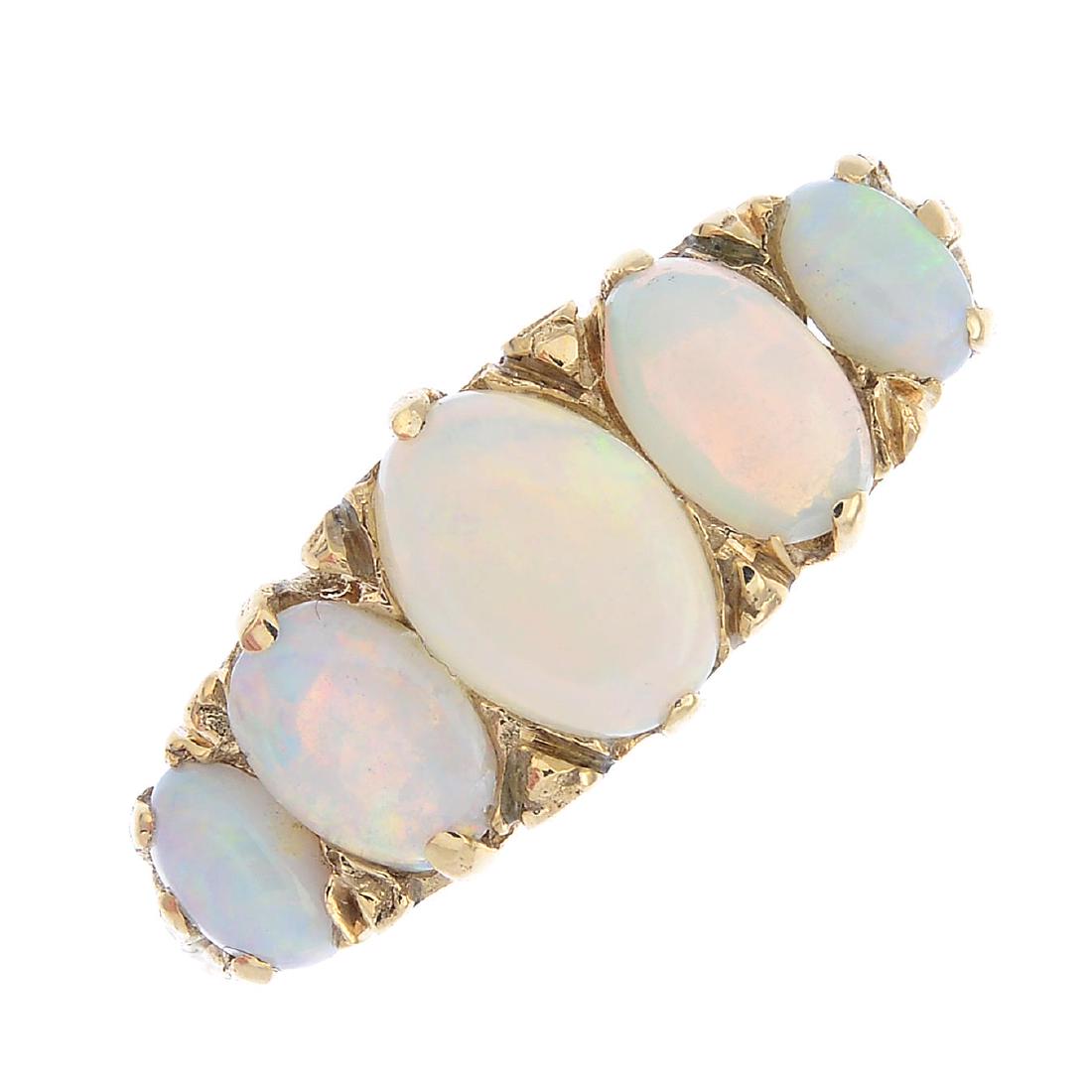 Antique 18ct Yellow Gold Opal 5 Stone Ring with Diamond Points