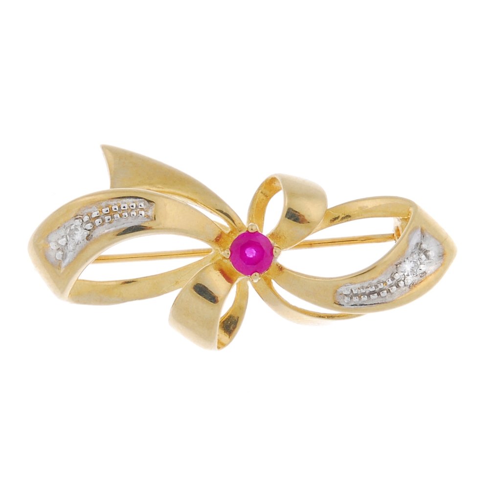 Platinum 11.10ct Diamond and Ruby Bow and Bloom BroochEastern European Art Gallery Inc$17,0002 days Left