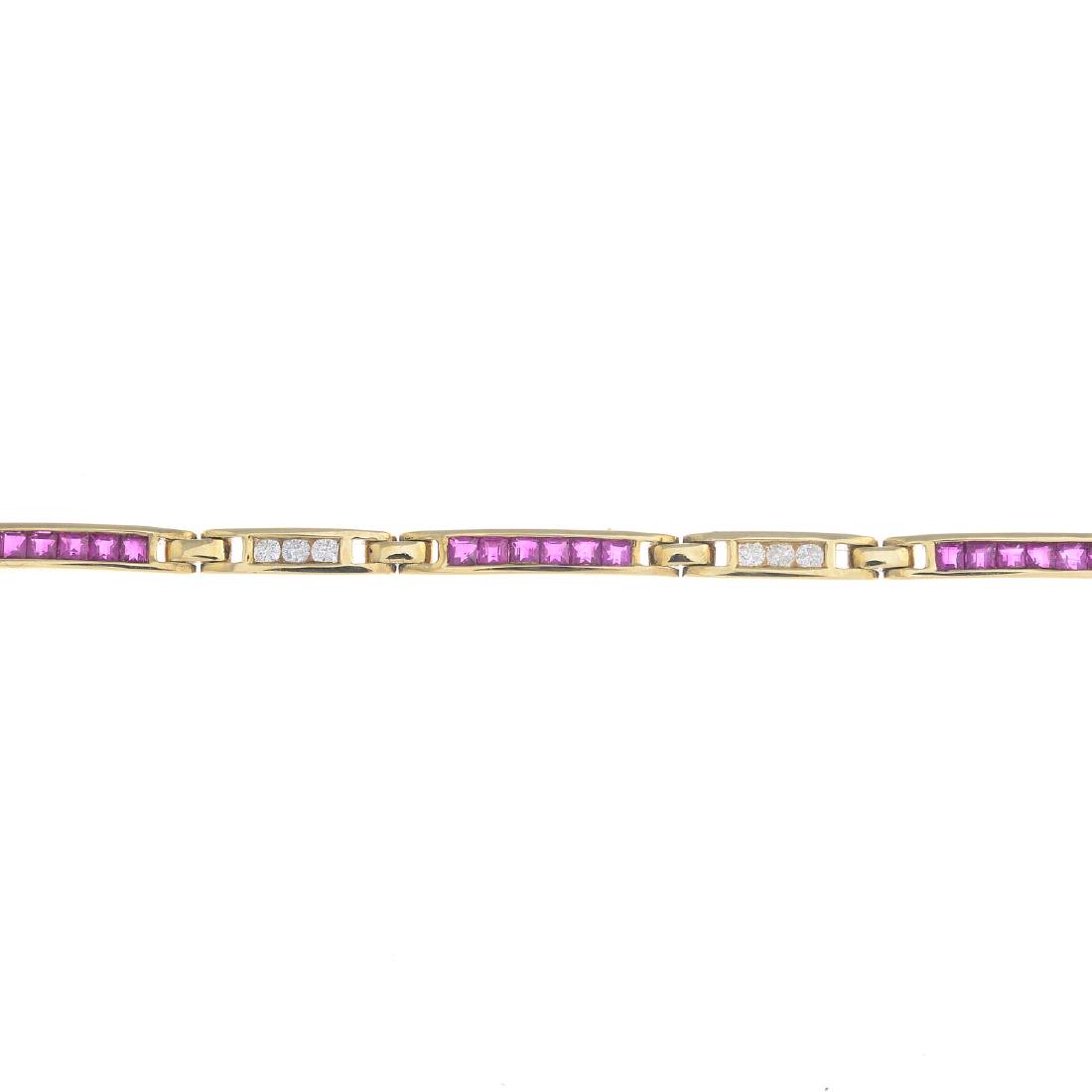 A 9ct gold ruby and diamond bracelet. Designed as a