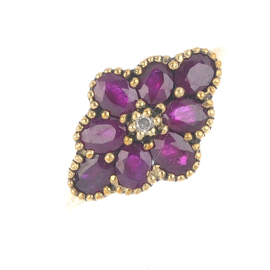 A 9ct gold ruby and diamond dress ring. Of