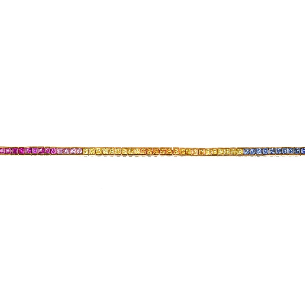 18KT GOLD MULTI SAPPHIRE TENNIS BRACELET APPROX 13 CTS