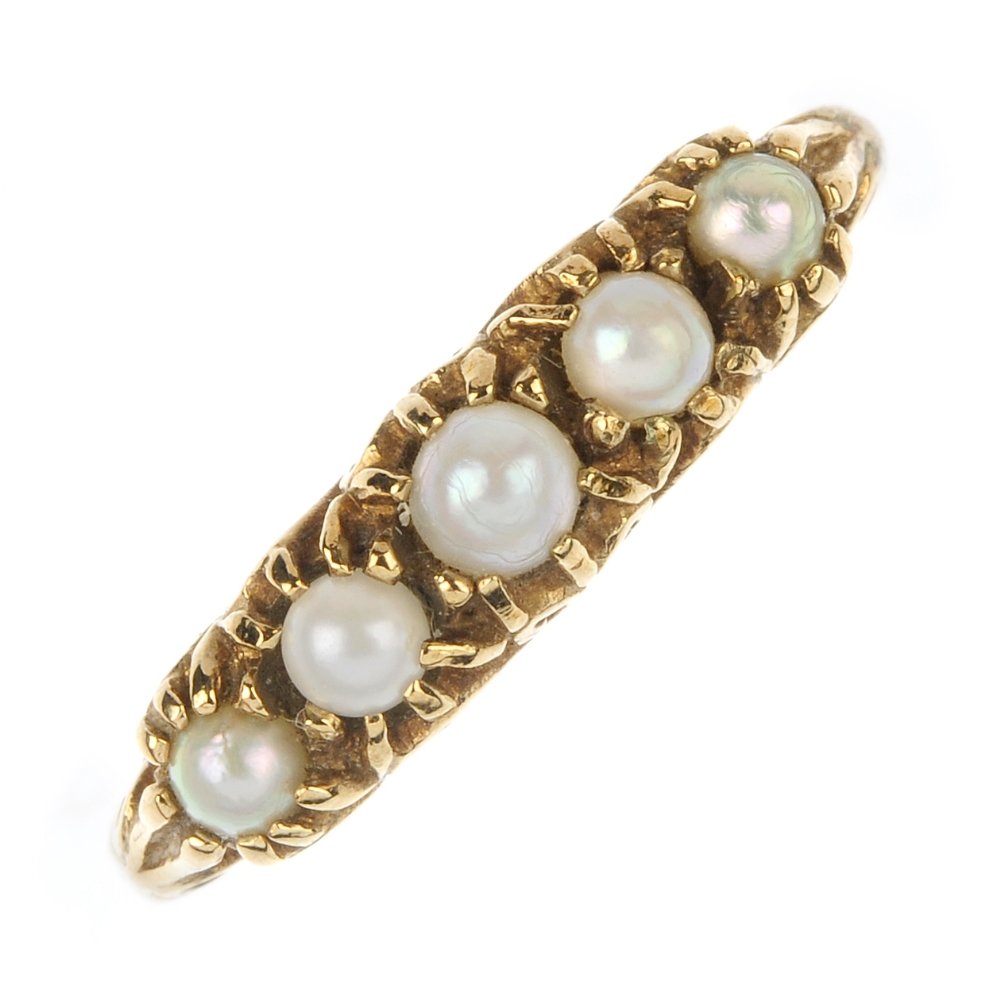 A 9ct gold seed pearl five-stone ring.