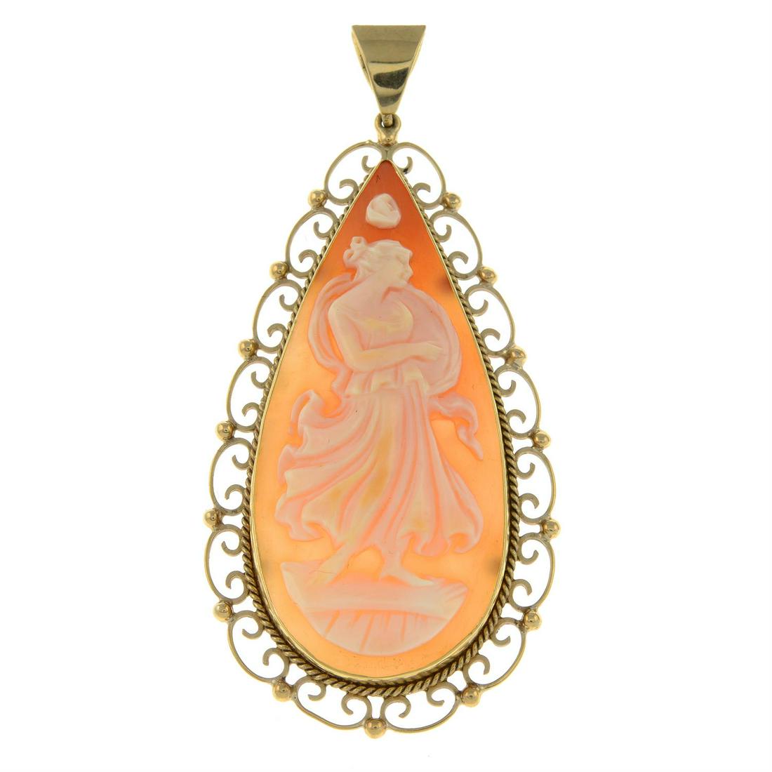 SoldA selection of jewellery.A selection of jewellery. To include a 9ct gold paste cross pendant, a 9ct gold shell cameo pendant suspended from a 9ct gold chain, together with a pair of cameo ear pendants. Three with hallmarks foSee Sold Price