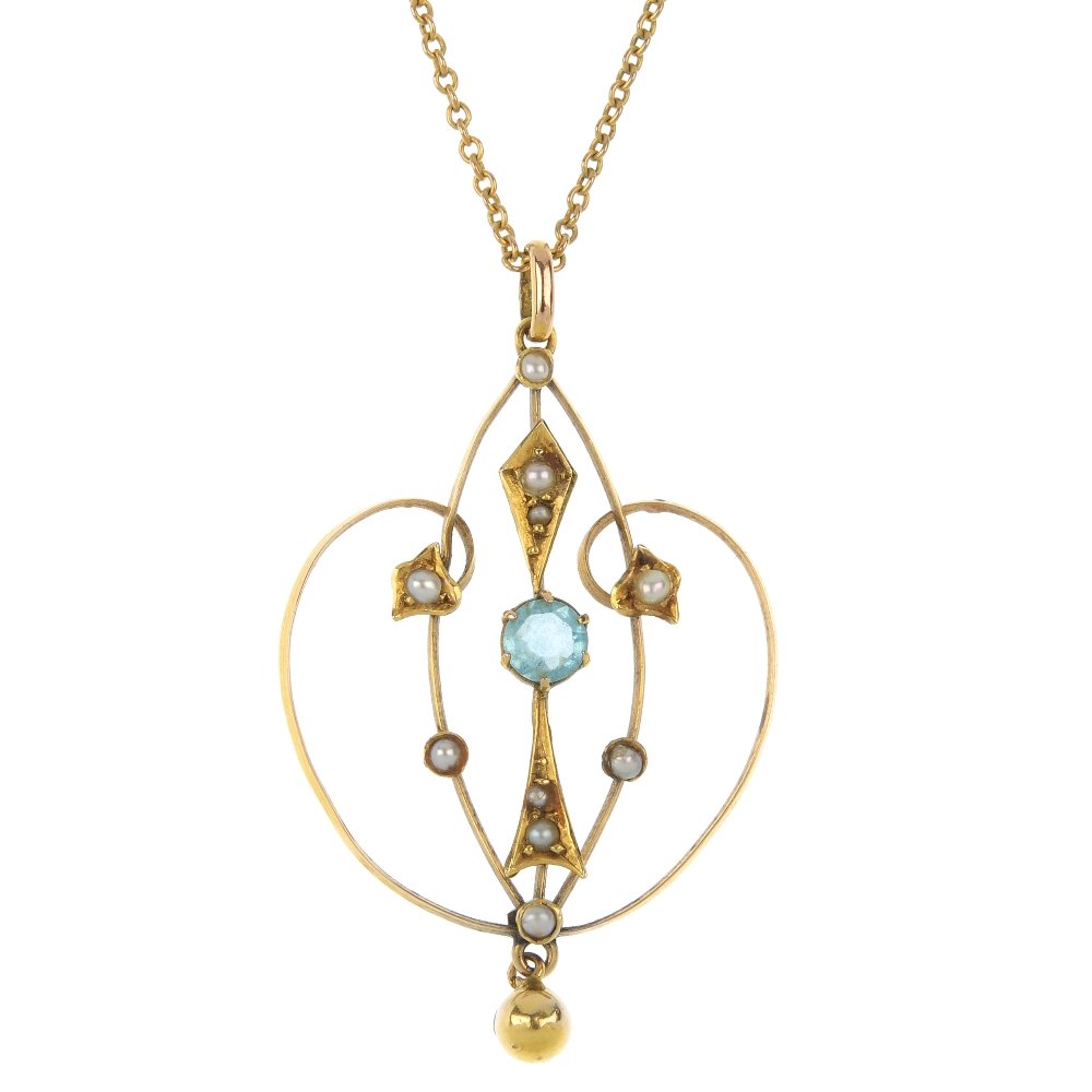 Edwardian 14K Gold Platinum Aquamarine Seed Pearl Pendant Necklace 18 InchDiamond Depot4.3(10)$6706 days Left