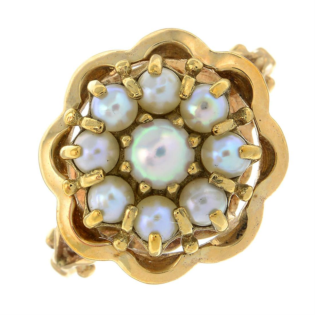 A 9ct gold split pearl floral cluster ring.