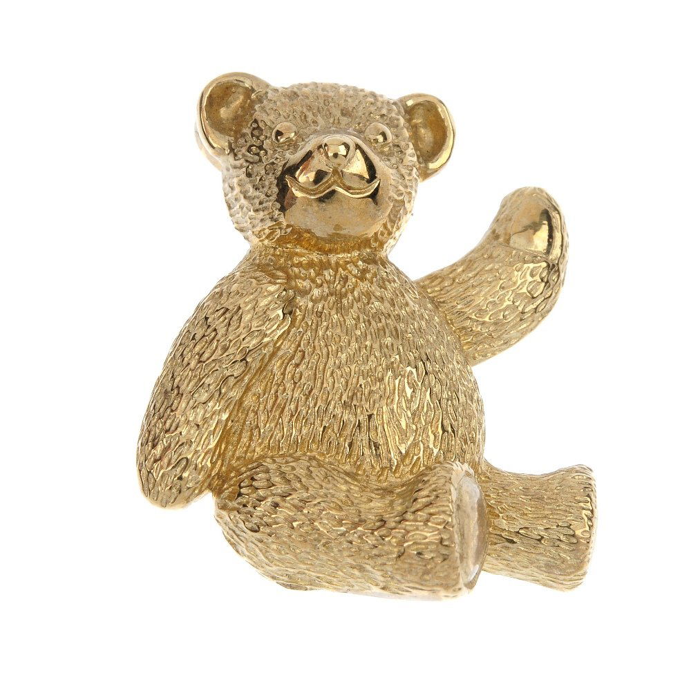 A 9ct gold teddy bear brooch.