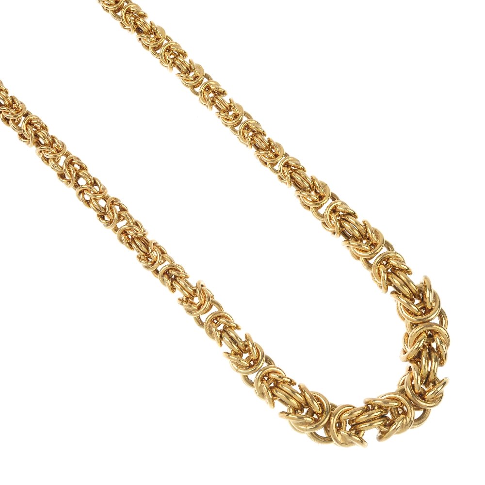 A 9ct gold woven-link necklace.