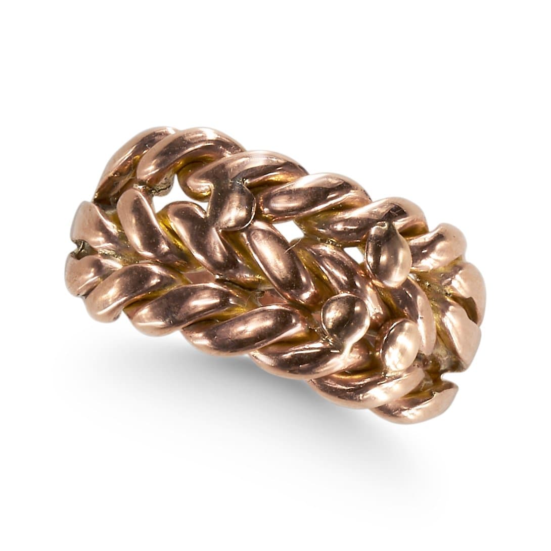 A 9CT ROSE GOLD, CELTIC ROPE KEEPER RING.