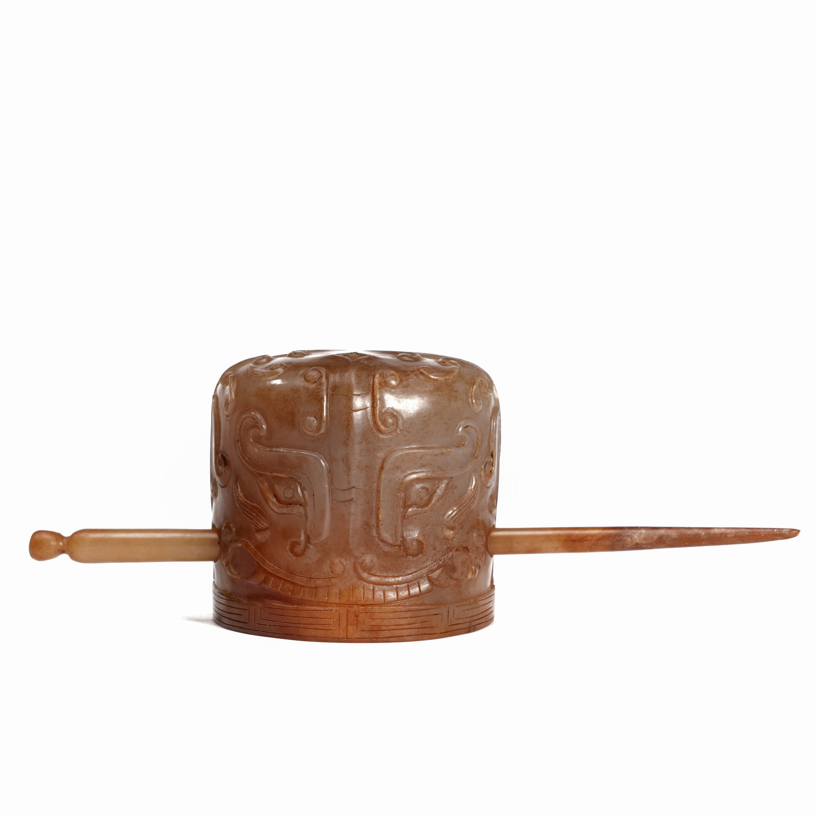 A AGATE SNUFF BOTTLE WITH HANDLES