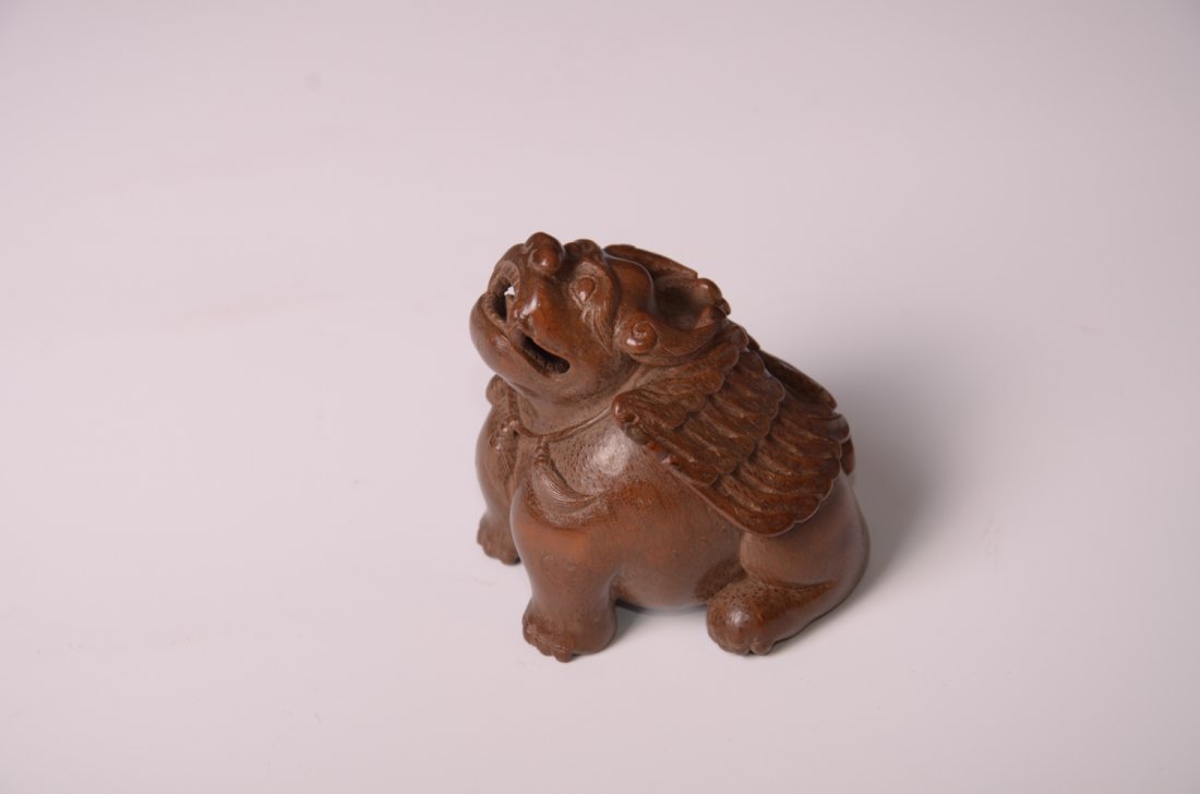A BAMBOO ‘MYTHICAL BEAST’ CARVING