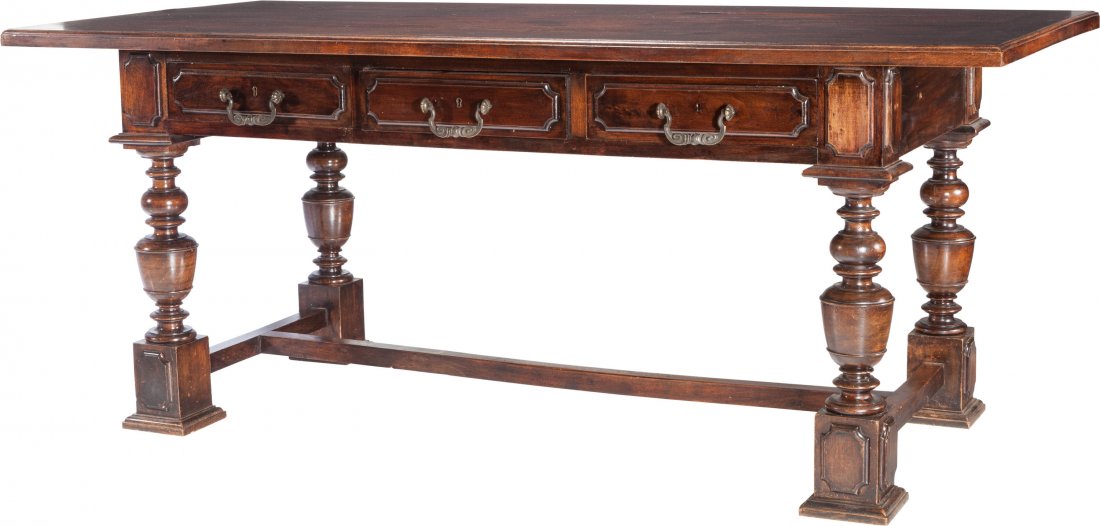 An Italian Baroque Style Walnut DeskA Queen Anne Style Demilune Console7 days LeftAn Italian Baroque oak table14 hrs LeftA walnut and marquetry console table, 19th century, Italian,4 days LeftSPANISH BAROQUE STYLE CARVED WALNUT CONSOLE TABLE2 days LeftRENAISSANCE STYLE CARVED WOOD 2-DRAWER WRITING TABLE / DESK3 days LeftLouis XVI Style Walnut Single Drawer Writing Table4 days LeftITALIAN BAROQUE STYLE CARVED WALNUT TRESTLE DINING TABLE, 78"L3 days LeftLouis XV Style Walnut Entry / Writing Table4 days LeftA GEORGE II STYLE WALNUT SIDE TABLE, POSSIBLY INCORPORATING SOME 18TH CENTURY ELEMENTSMar 03, 202619TH C. REGENCY WRITING DESK.5 days LeftWALNUT L/T WRITING TABLE, JONATHAN CHARLESMar 07, 2026French Provincial Walnut Writing Table, late 19th c., H.- 25 1/2 in., W.- 27 1/2 in., D.- 17 1/2 in.Feb 27, 2026A GEORGE II WALNUT GAMES TABLE, CIRCA 1730Mar 03, 2026Lillian August George III Style Walnut Lamp Table with Drawer4 days LeftFrench Louis XV Style Mahogany Writing Table, 20th c., H.- 29 1/4 in., W.- 41 1/4 in., D.- 19 3/4Feb 27, 2026