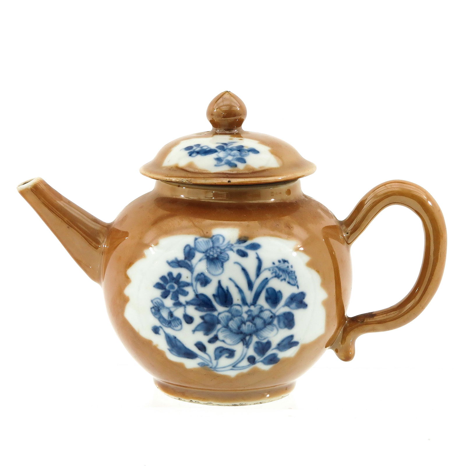 SoldA Batavianware TeapotFloral decor, 18th Century, 14 cm. tall, chip on cover, restoration on handle.See Sold Price