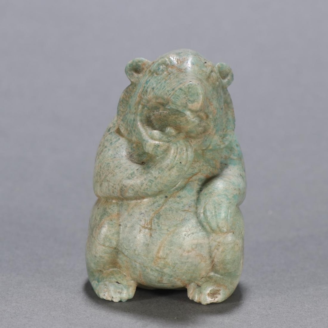 Vintage Hetian Jade Hand-Carved Statue w Bear