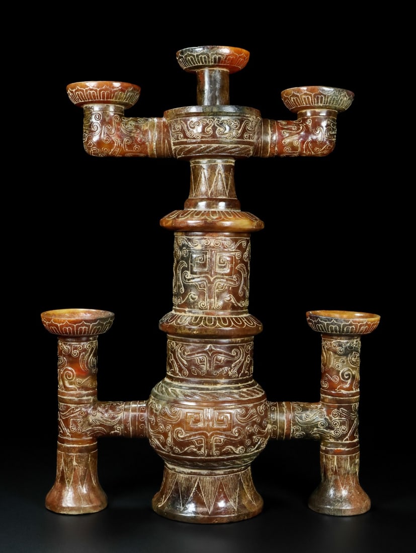 A Exquisite Hotan Jade Auspicious Beast Candlestick
