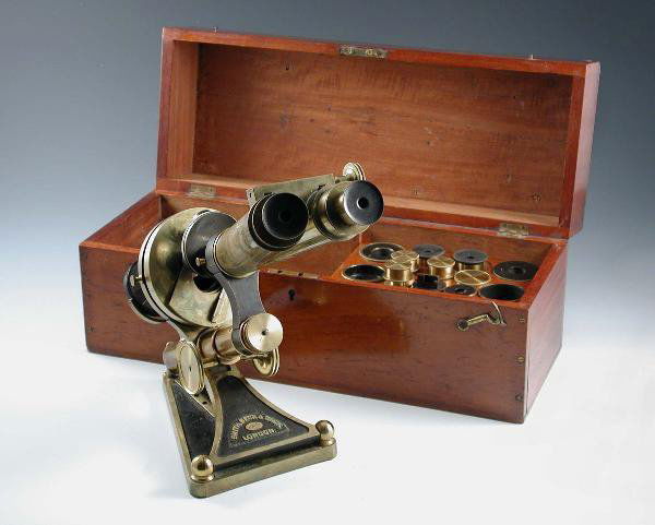 A Powell & Lealand No. 3 1874 Monocular MicroscopeMar 25, 2026Box-Base Cary-Type Compound Microscope, c. 18405 hrs LeftBausch and Lomb cased microscope, America, c. 1900s-1910s, model 53031 brass microscope with three3 days LeftVintage Spencer Monocular MicroscopeMar 21, 2026Antique Portable Drum Field MicroscopeMar 30, 2026French Drum Microscope by Oberhäuser, c. 1840–455 hrs LeftMicroscope by Watson and Sons LondonApr 12, 2026Vintage Student Microscope with Accessories in Fitted CaseMar 31, 2026Culpeper-Type Compound Microscope, c. 1800–205 hrs LeftVery Early Compound Microscope by Carl Zeiss in Jena, 18645 hrs LeftAntique W. & L.E. Gurley Stadia Transit Level in Original Wooden Case2 days LeftBell Frame Sextant by Kelvin and Hughes in BoxApr 12, 2026Early Simple Microscope by Carl Zeiss, Jena, 18665 hrs LeftCompound Microscope by Carl Zeiss in Jena, 18945 hrs Left3 Microscopes and 1 Spectroscope5 hrs LeftEdmund Messter Universal Bacteria Microscope with Eyepiece Turret, c. 18955 hrs Left