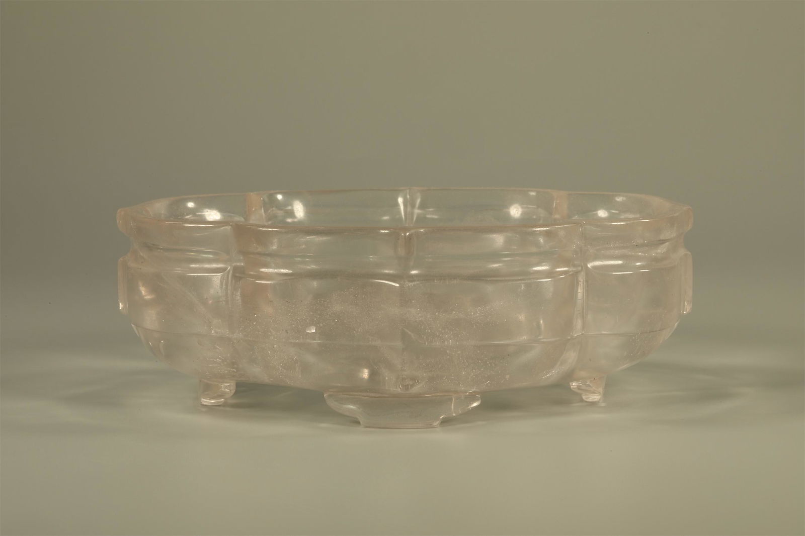 A BEGONIA-SHAPED CRYSTAL BRUSH WASHER.