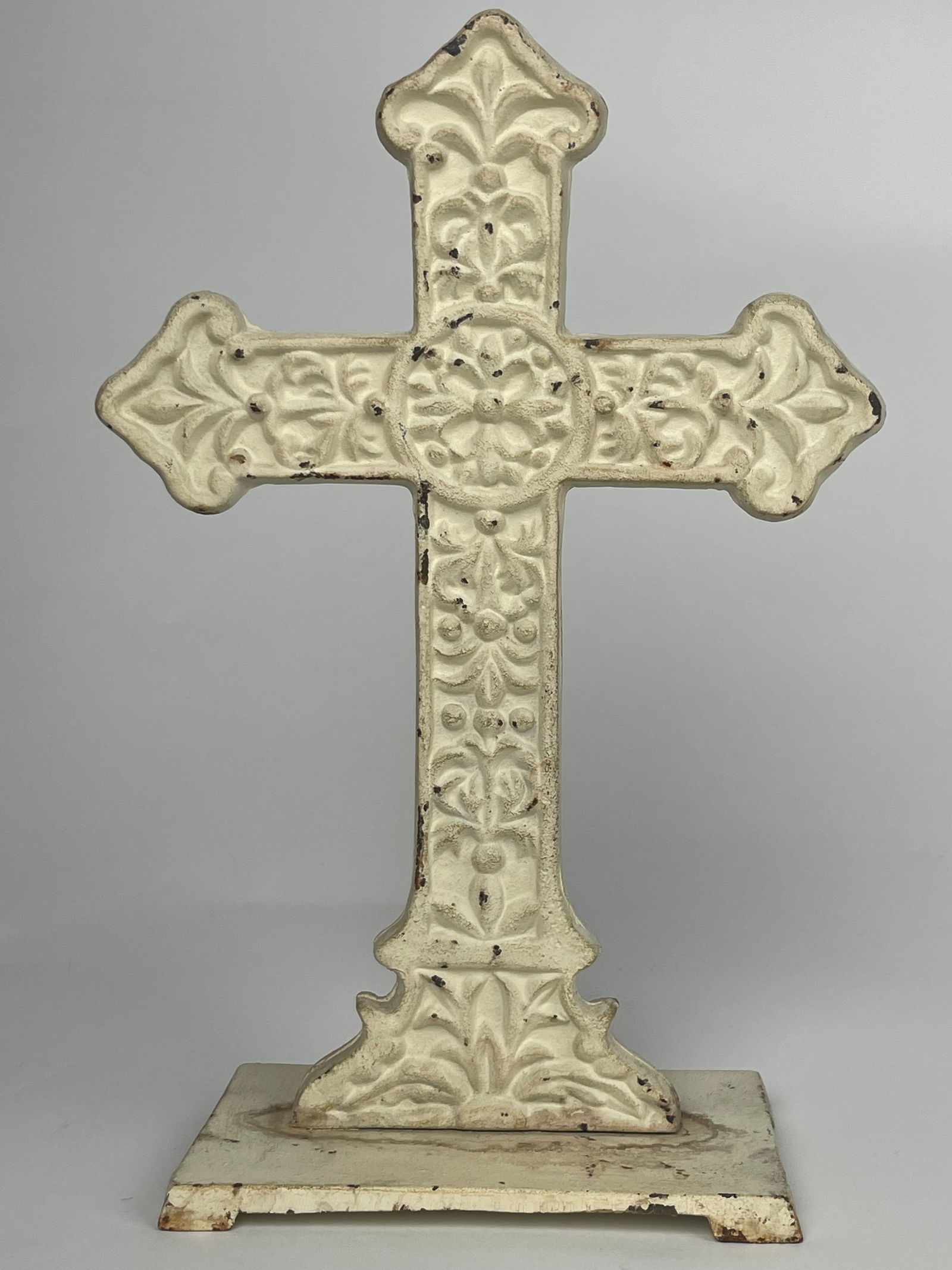 A Beige Cross Cast Iron Doorstop