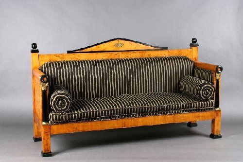 SoldBIEDERMEIER SOFABIEDERMEIER SOFA WITH INLAID NEOCLASSICAL PANELED SIDES & TRIM, APPROXIMATELY 81 IN X 28 IN X 38 IN HSee Sold Price