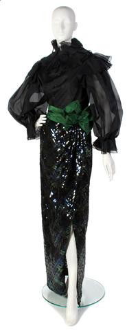 A Bill Blass Black Silk and Sequin Evening Ensemble