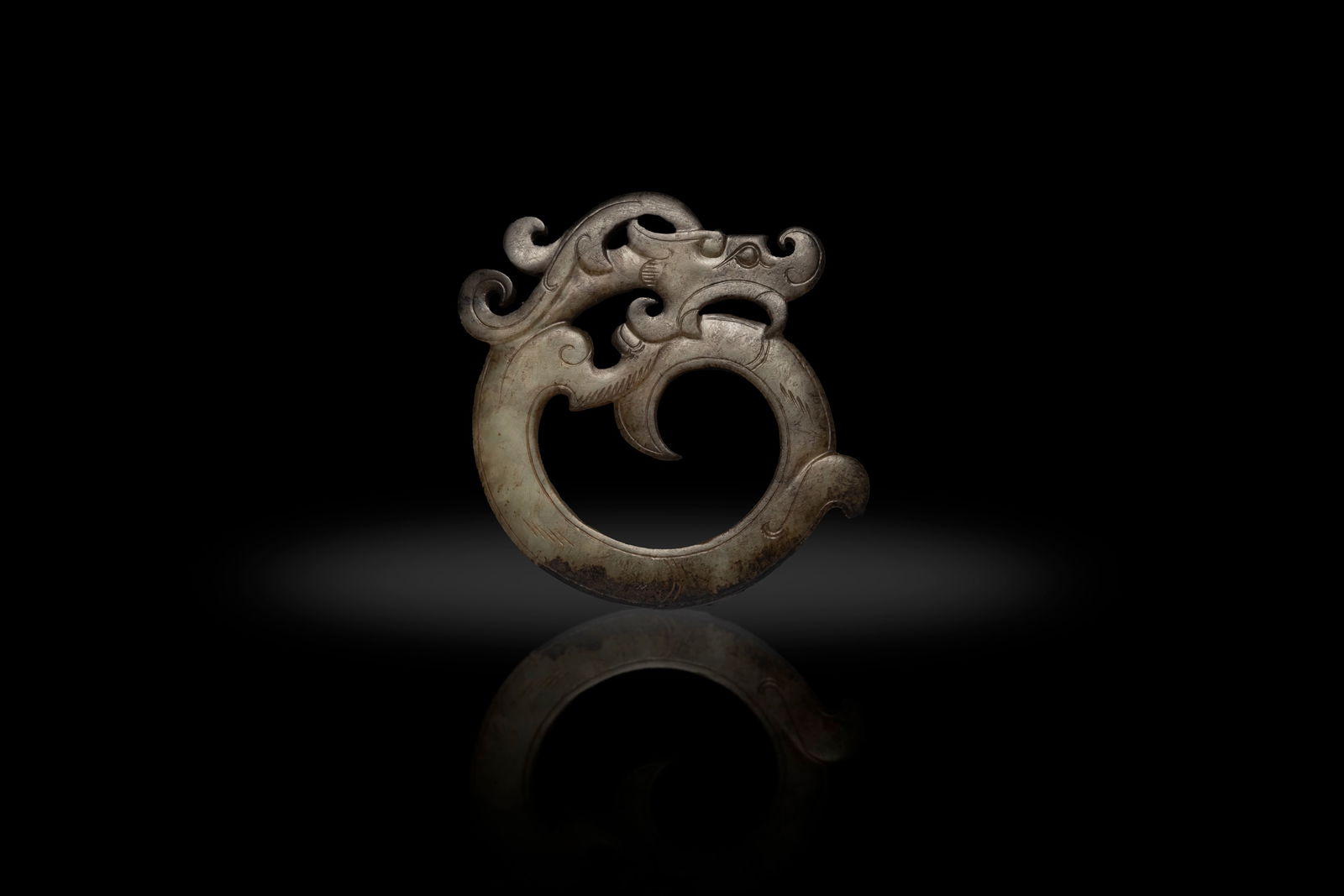 A BLACK AND WHITE JADE DRAGON 東漢風格 黑白玉咬