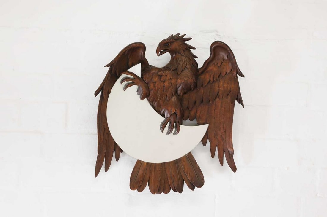 Carved Wood Chicken SculptureA carved linden wood Black Forest coat hook attributed to the Ruef Brothers, c.1890, Swiss,4 days Left19th Century French Black Forest Oak Mirror with Bronze Bird Motif1 day Left19th Century French Black Forest Walnut Hunting Panel with MirrorFeb 27, 202619th Century French Black Forest Carved Walnut Mirror Wall Sculpture1 day LeftBlack Forest 20" Carved Two Headed Eagle PlaqueMar 21, 2026Antique Carved Wood Frame Beveled Glass Wall Mirror4 days LeftCarved Pine Folk Art MirrorMar 07, 202618th Century French Provincial Carved Wood Mantel Mirror with Garden ToolsMar 04, 2026Arts and Crafts Era Wooden Tilting Vanity Mirror with Carved Base6 hrs LeftVintage German Black Forest Carved Bird Matchstick HolderMar 15, 2026Wood-Framed Mirror with Decorative Shell MotifMar 01, 2026Vintage Boho Hand Carved Alabaster Mirror 53 x 54 Rustic Elegance2 days LeftA large Federal eagle style partial gilt pier mirror circa 182011 hrs LeftVintage Hand Carved Wooden Eagle 7.75 inch Decorative AccentFeb 28, 2026Elegant Mahogany Chippendale Style Hanging Mirror 22.5 x 41 Custom Carvings6 days Left