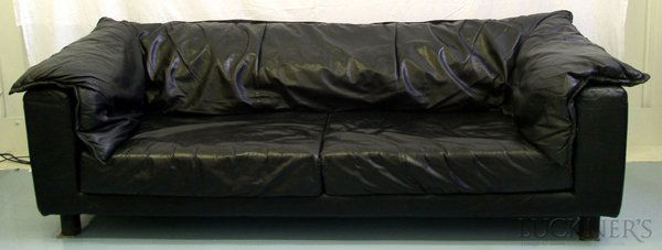 SoldCASSINA Italy Leather Couch Sofa. Slouched leatheCASSINA Italy Leather Couch Sofa. Slouched leather form. Short black plastic feet. Marked.-- Dimensions: H: 28 inches: W: 92 inches: D: 30 inches ---See Sold Price