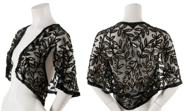 SoldUnlabeled Black Sequin Crop Evening JacketShort sleeve sequined black crop jacket, app 13.5 in. Long, size 44 , has a snug fit. Semi sheer mesh fabric with black sequins. 3 Up scale sequin Jacket, crop jacket, , evening wear, ladies wearablesSee Sold Price