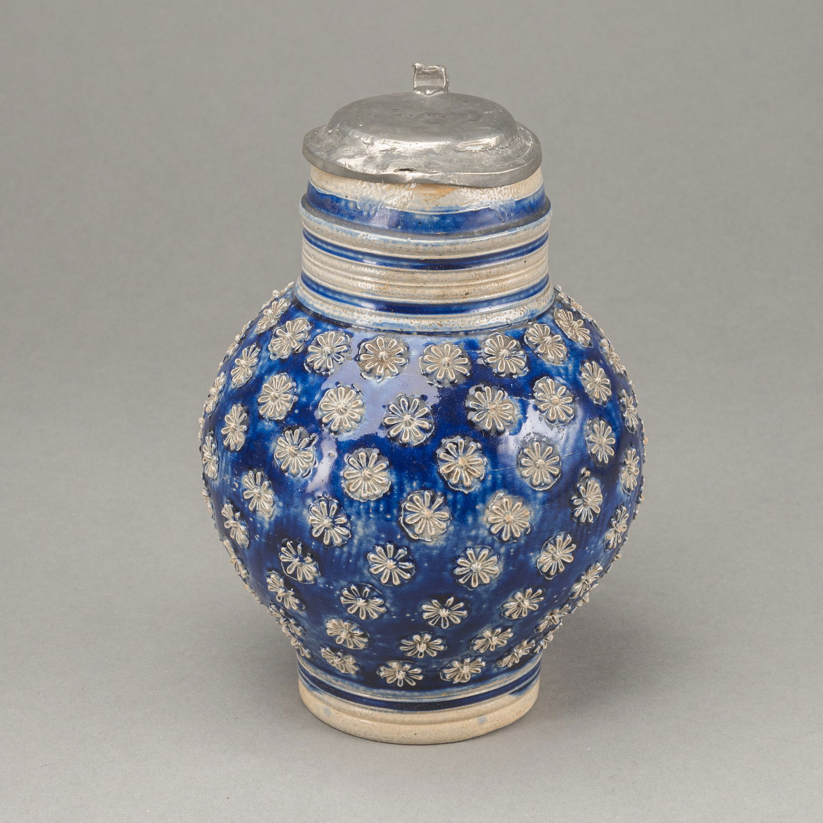 A BLUE AND SALT GLAZED EARTHENWARE JAR