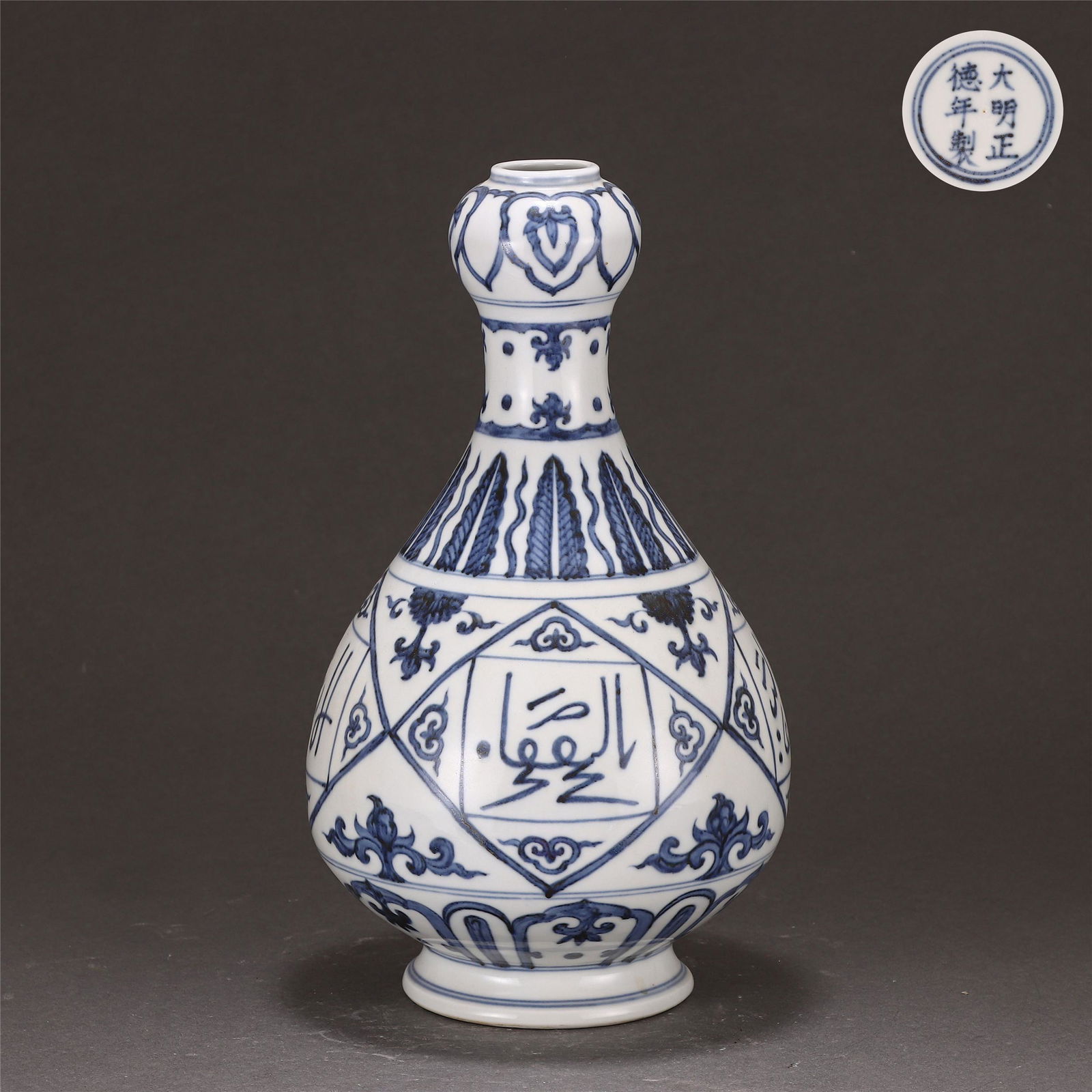 A Blue and White Arabic Inscript Garlic Head Vase