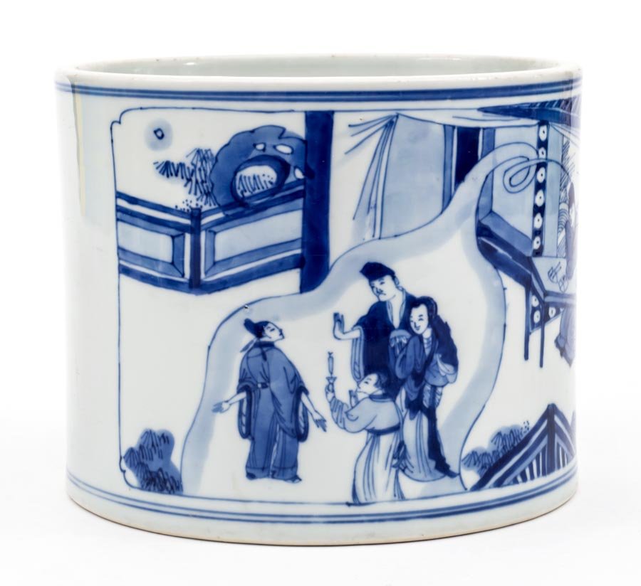 A QING DYNASTY KANGXI BLUE-AND-WHITE BRUSH HOLDER WITH FIGURE STORY SCENESDynasty Heritage Auctions$2,200Feb 28, 2026