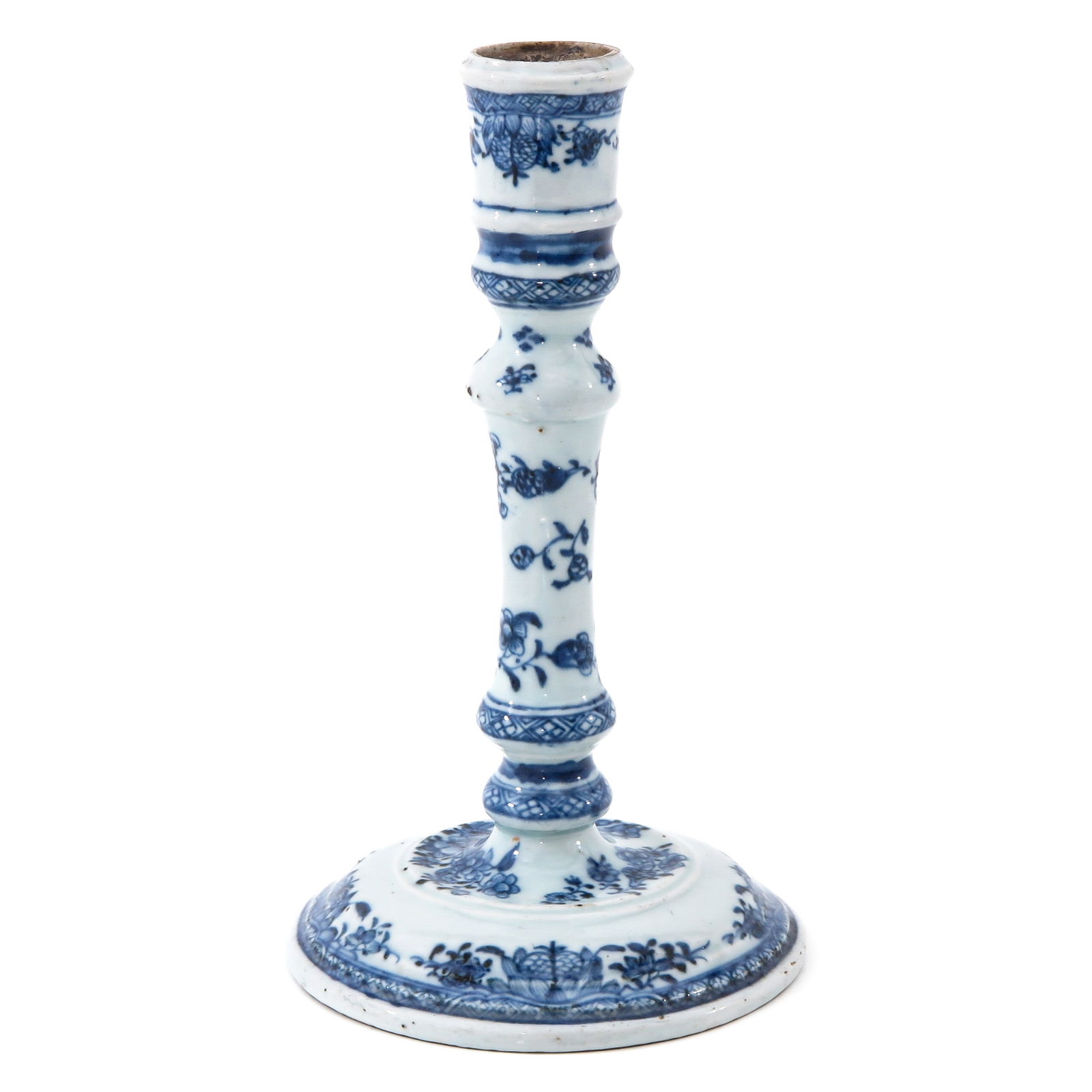 CHINESE QING DYNASTY BLUE AND WHITE CANDLESTICKCHINESE QING DYNASTY BLUE AND WHITE CANDLESTICK; H. 14.5 cm.See Sold Price
