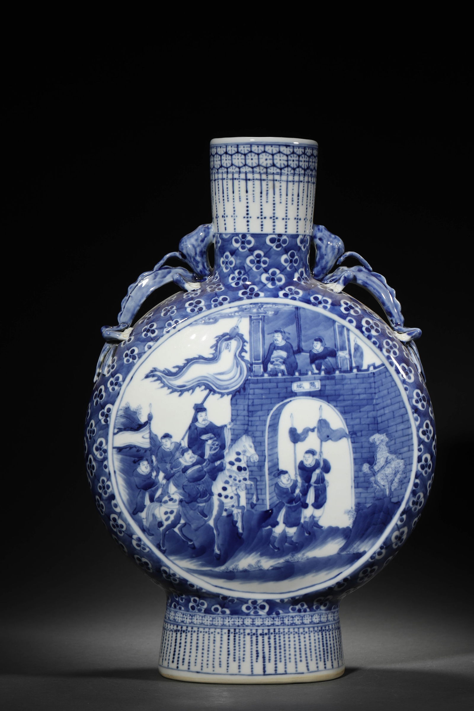 A Blue And White Figural Moonflask