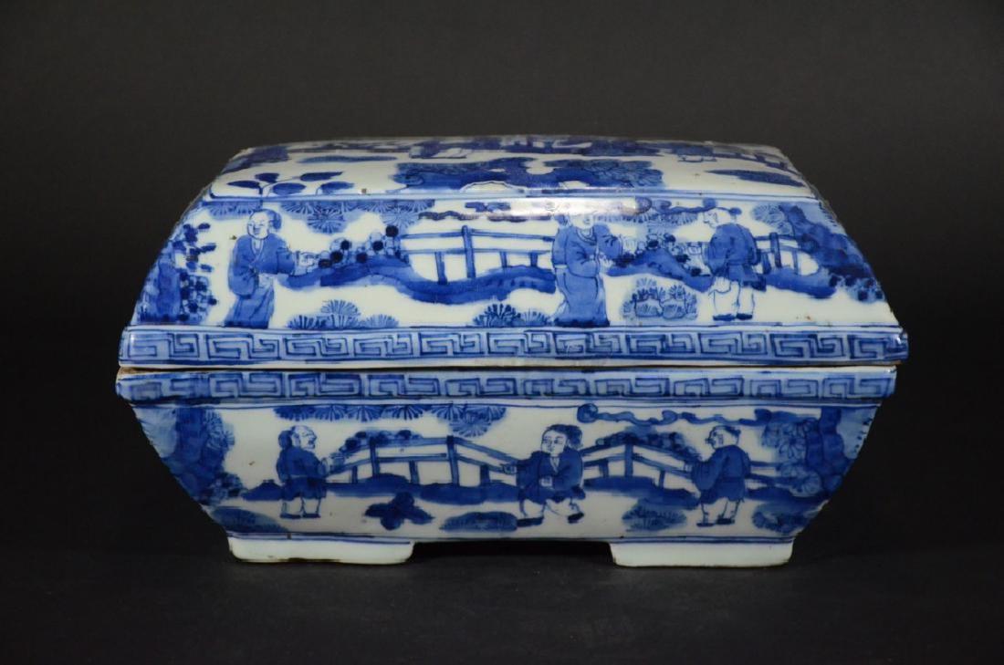 A BLUE AND WHITE FIGURE BOX