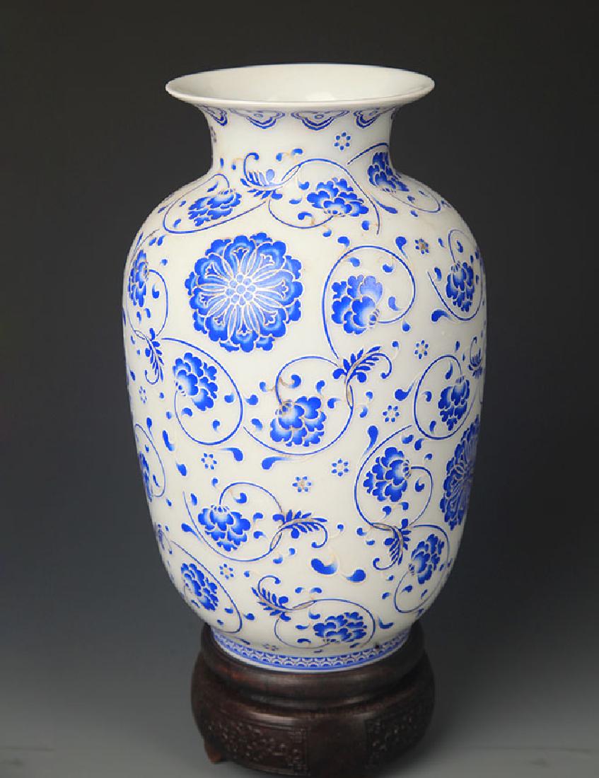 A BLUE AND WHITE FLOWER PATTERN LANTERN VASE