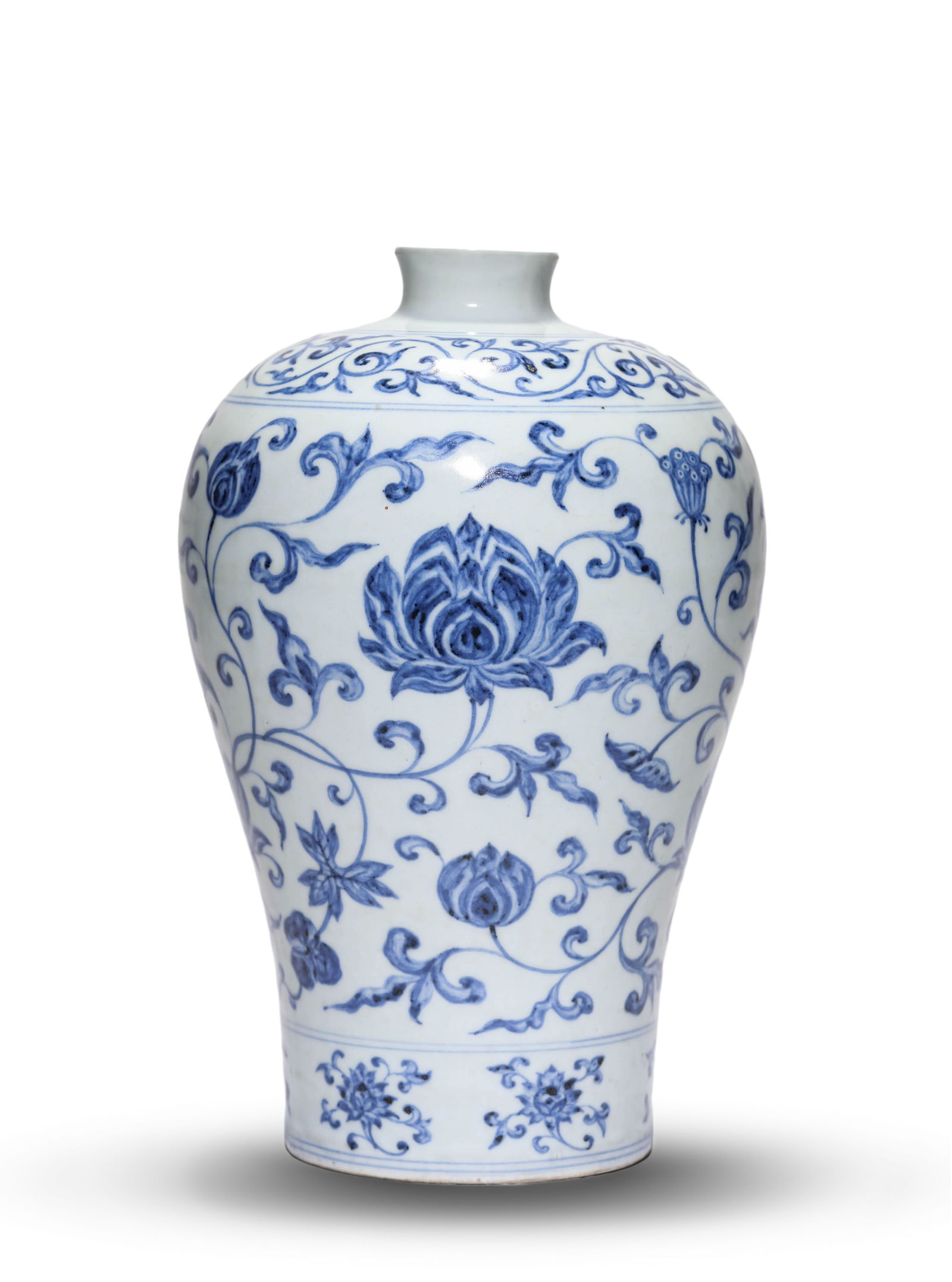 A BLUE AND WHITE 'INTERLOCKING LOTUS' MEIPING