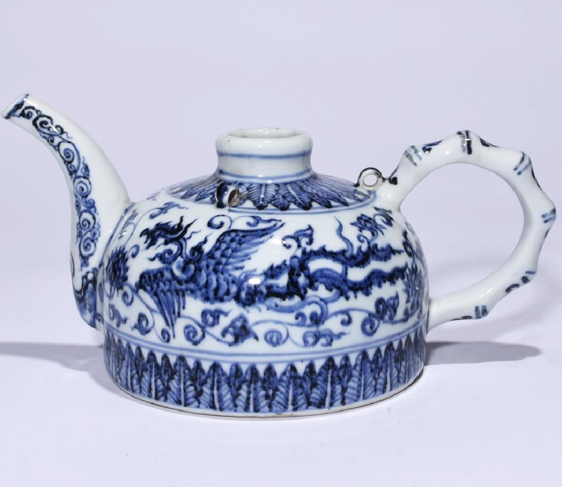 A BLUE AND WHITE TEA POT