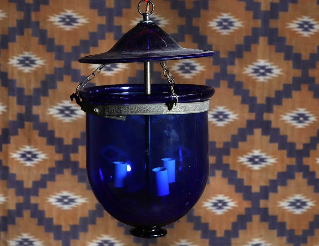 SoldGroup of Blue Glass Lantern LensesLargest Measures 5-3/8", Middle Measures 5-1/4", smallest Measures 4-3/8". 14 TotalSee Sold Price