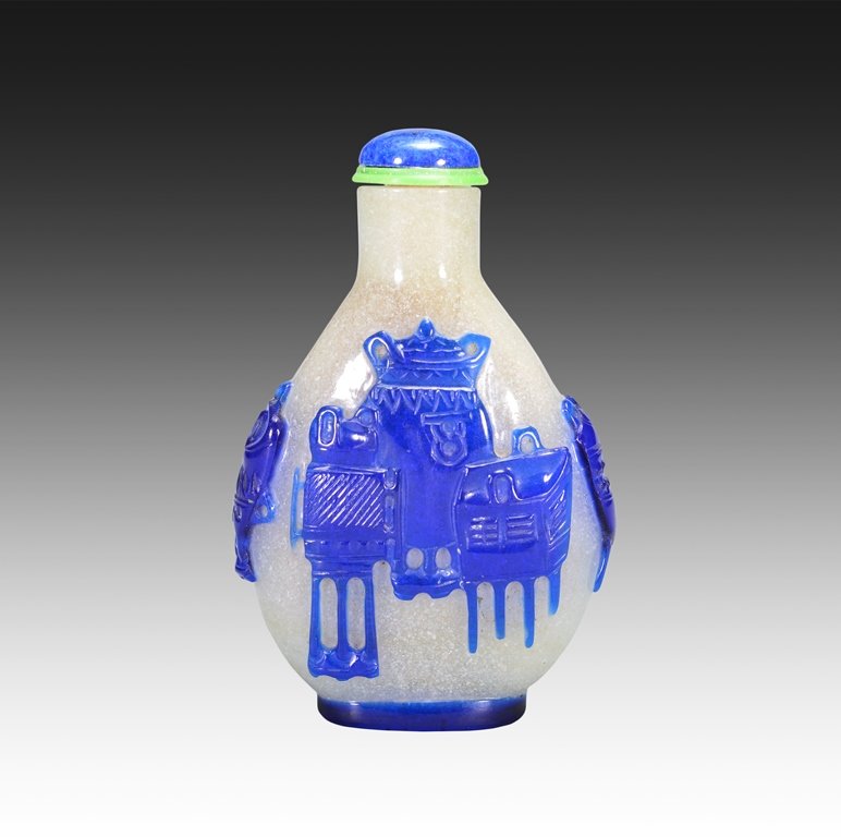 A BLUE OVERLAY GLASS SNUFF BOTTLE