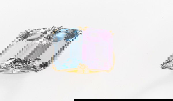 A Blue Topaz and Amethyst Two-Stone Ring